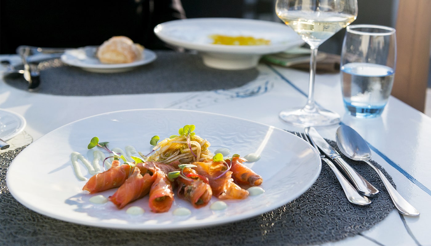 Creative dishes are ever-present on both the five-course tasting menu at €60, along with the a la carte menu. The menus change seasonally, with eight tasting menus annually.