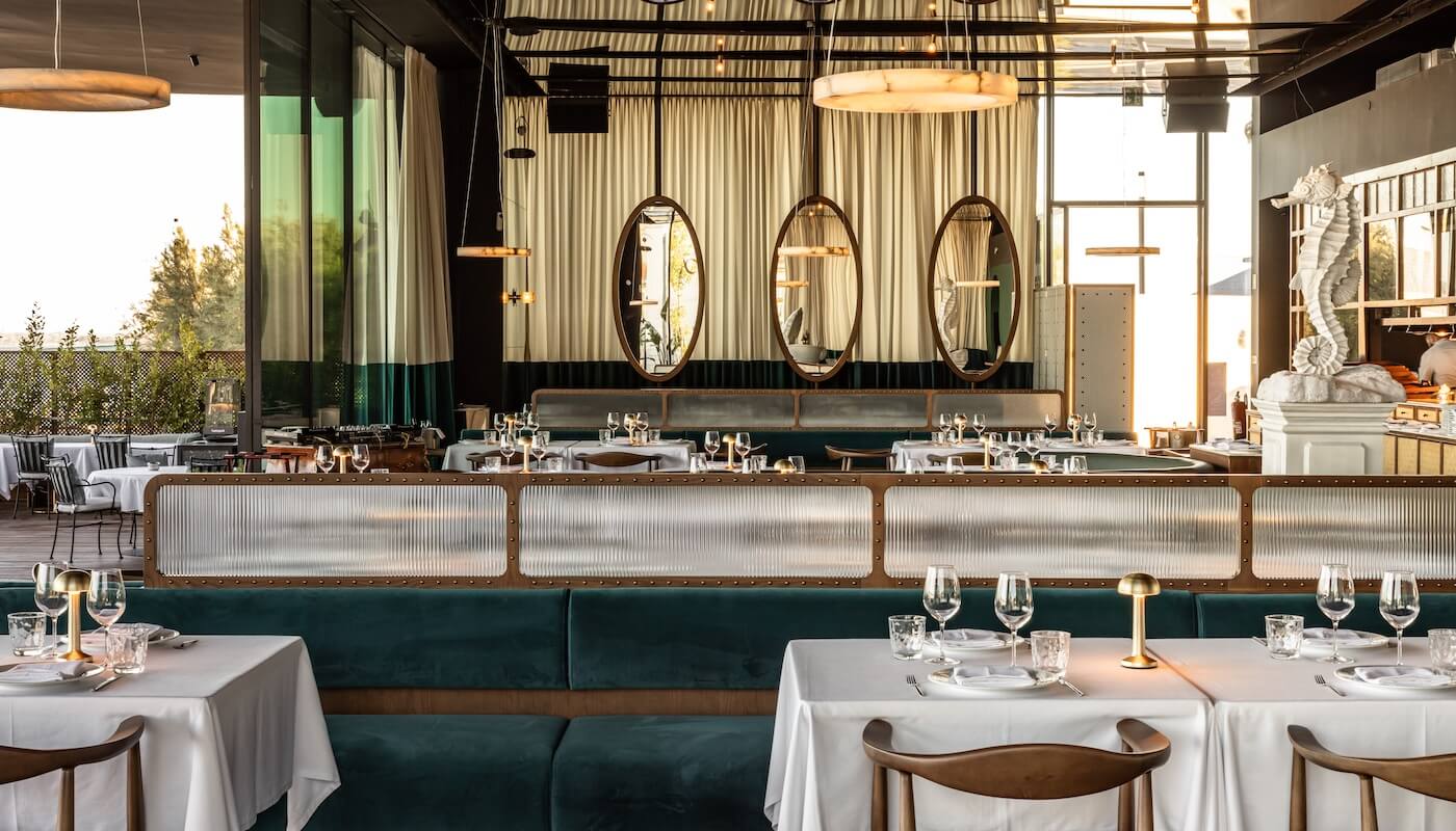 For mains, choose among the fresh fish or ask for a large-format classic, such as the ÀCosta codish (confit and served on bread with green beans, onions, and olives), European lobster rice, or pasta gamberini with shrimp, all of which are served in portions for two. The land-animal section include Alentejano pork and steak tartare, and the standout side is the “Rich Rice,” which is made with dates, green beans, and toasted almonds.