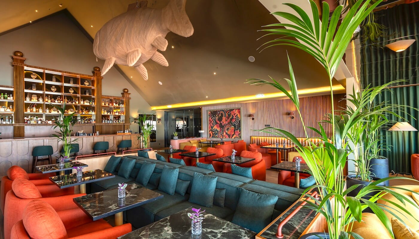 From the moment you step inside, Cusco announces its personality through design. Bright, bold colors—golden yellow, blood orange, and deep teal—set the tone, while joyful Peruvian-inspired prints of flowers, tropical birds, and butterflies animate the walls. The atmosphere is modern and intimate yet relaxed.