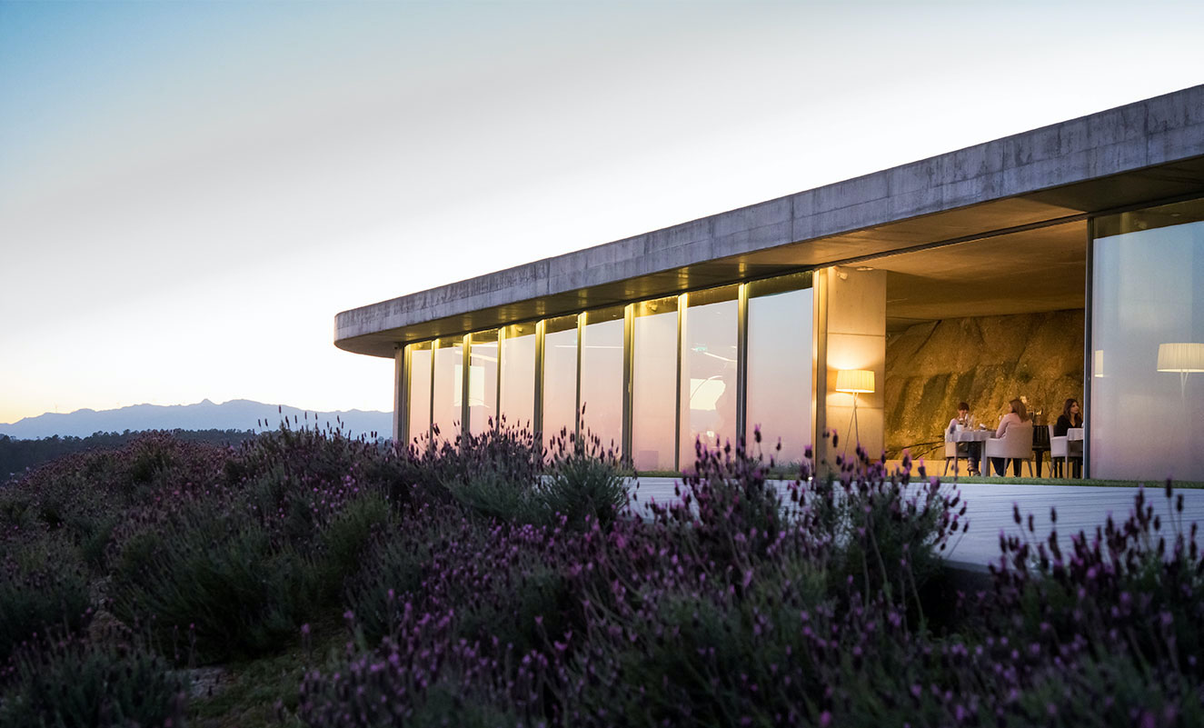Located in the center of Portugal, the city of Viseu is surrounded by mountains and the rivers Vouga and Dao. This region is where the de Lemos family is synonymous with ultra luxurious, quality cotton and silk towels, rugs and bed linen. A few kilometres away from Viseu city center is Quinta de Lemos, a contemporary design building which sits on 25 hectares of vineyards, 3000 olive trees and beehives to produce the finest honey. Within the Quinta, one finds Mesa de Lemos, the award-winning restaurant and Gold Fork of Guia Boa Cama Boa Mesa recipient.