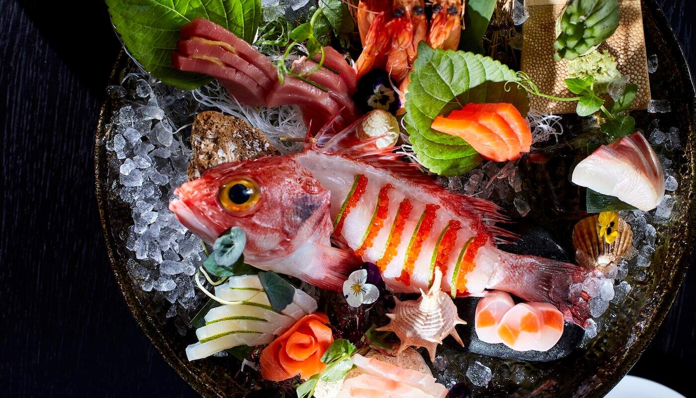 Guests can experience Mizu in two distinct ways. The Teppanyaki table, seating just ten, offers an intimate, interactive encounter where Chef Allan Zarandin showcases the centuries-old teppan art. The six-course set menu begins with Sake Kasujiru, a delicate sake lees soup, followed by dishes such as Tai (sea bream with yuzu), Buta (Iberian pork secretos with miso and caramel), and Yakimeshi fried rice with XO sauce. For the main course, diners choose between Black Angus, Tiger Prawn, or Japanese Wagyu, before a sweet finale of seasonal fruits with miso and yuzu ice cream.
